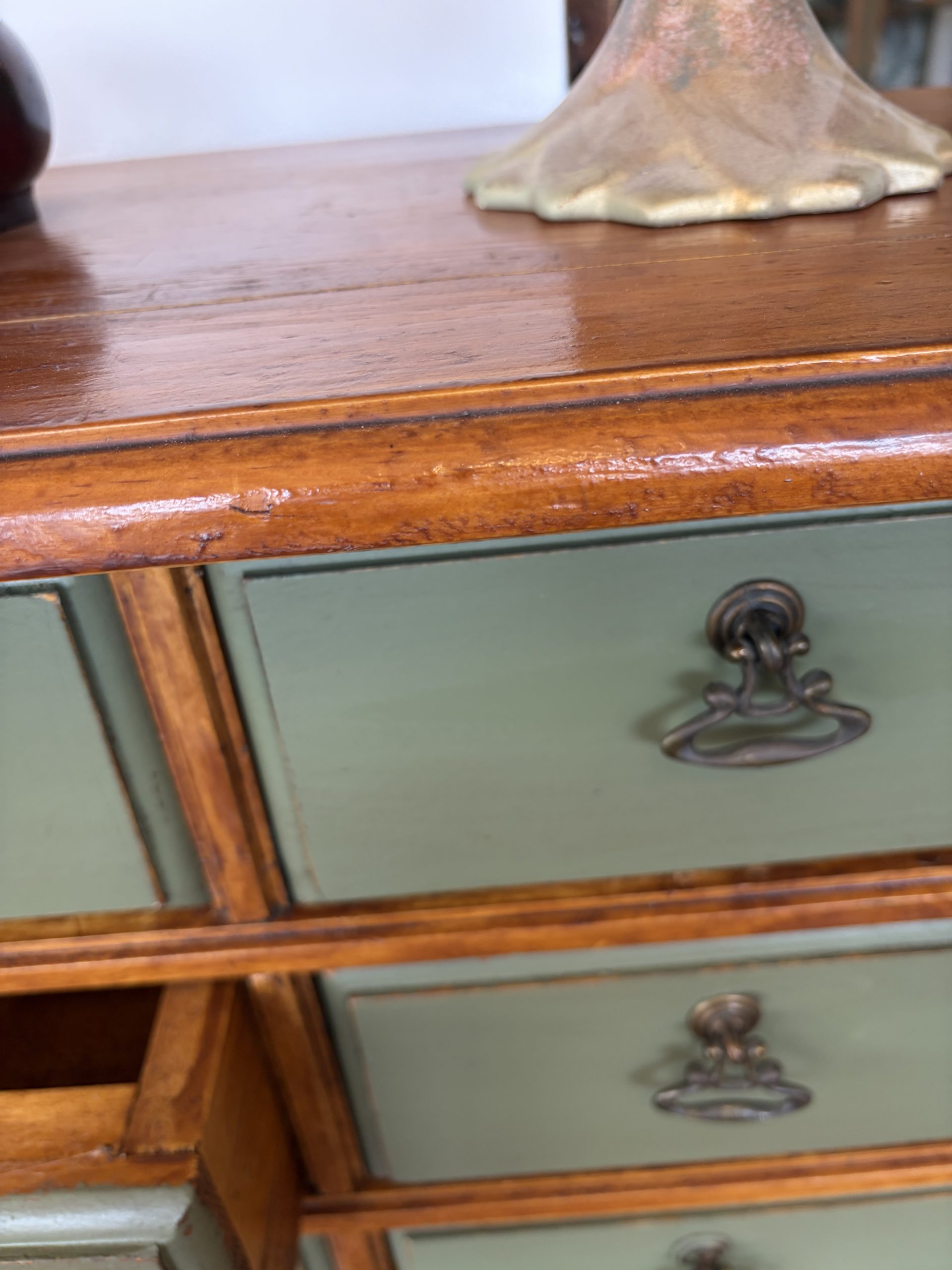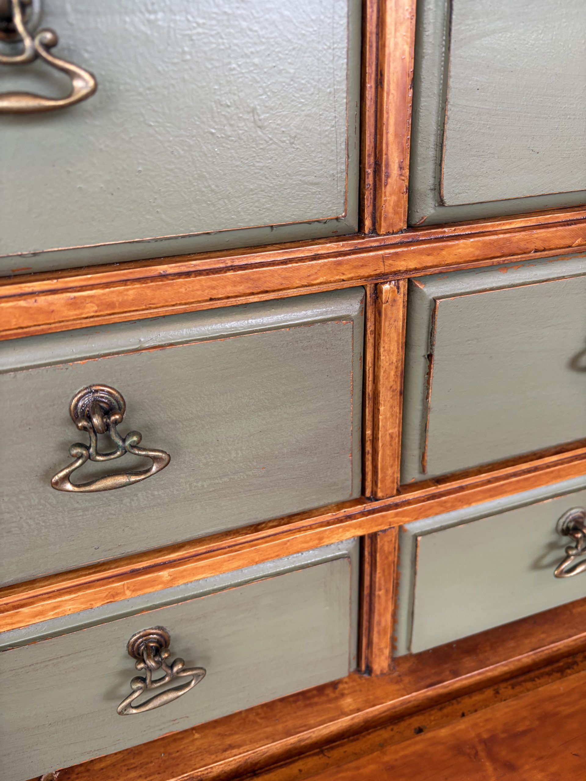 Detalles Artesanales: Su acabado envejecido y la selección de múltiples cajones de diferentes tamaños ofrecen un juego visual único, resaltando su carácter de pieza de autor.