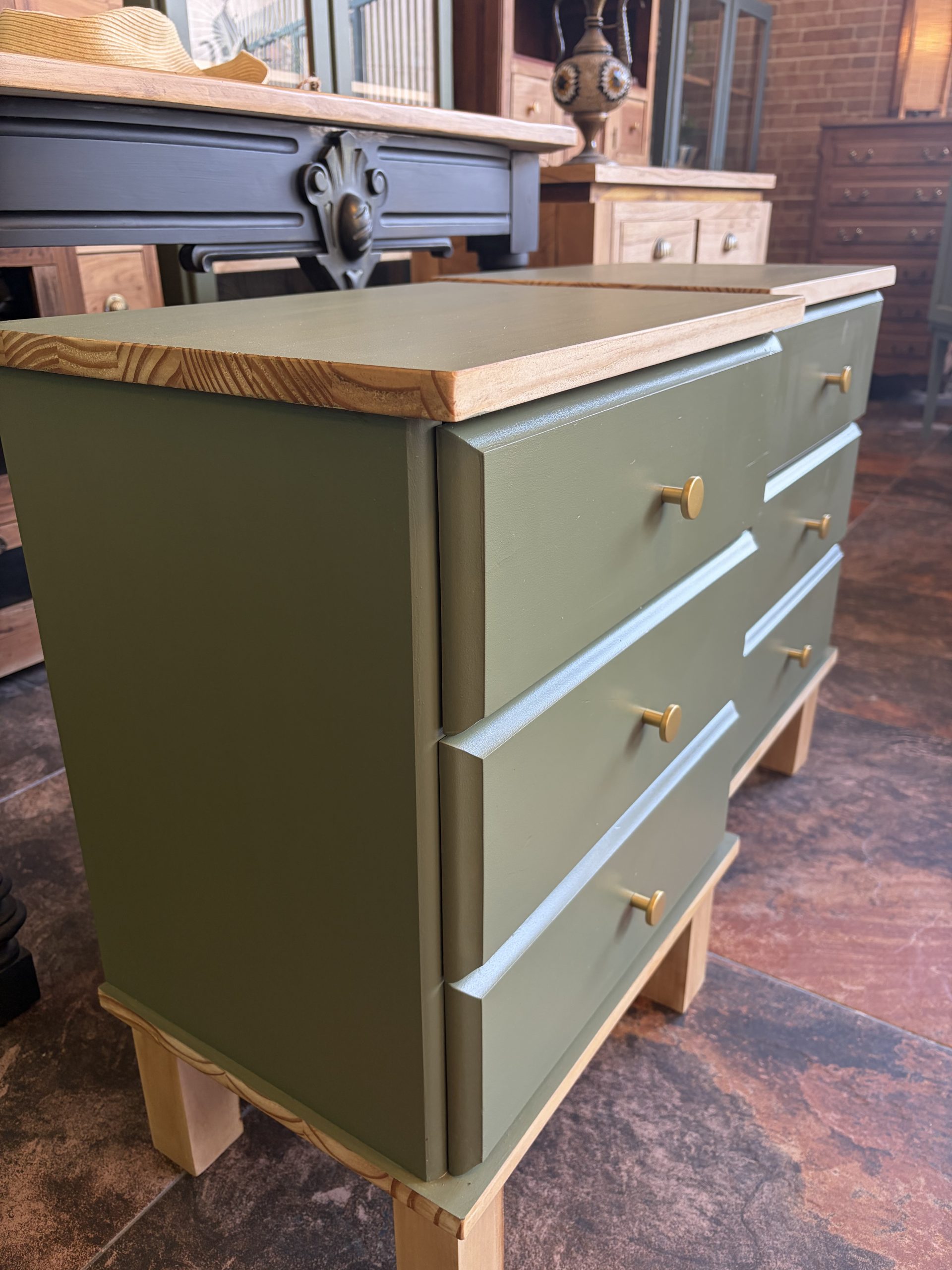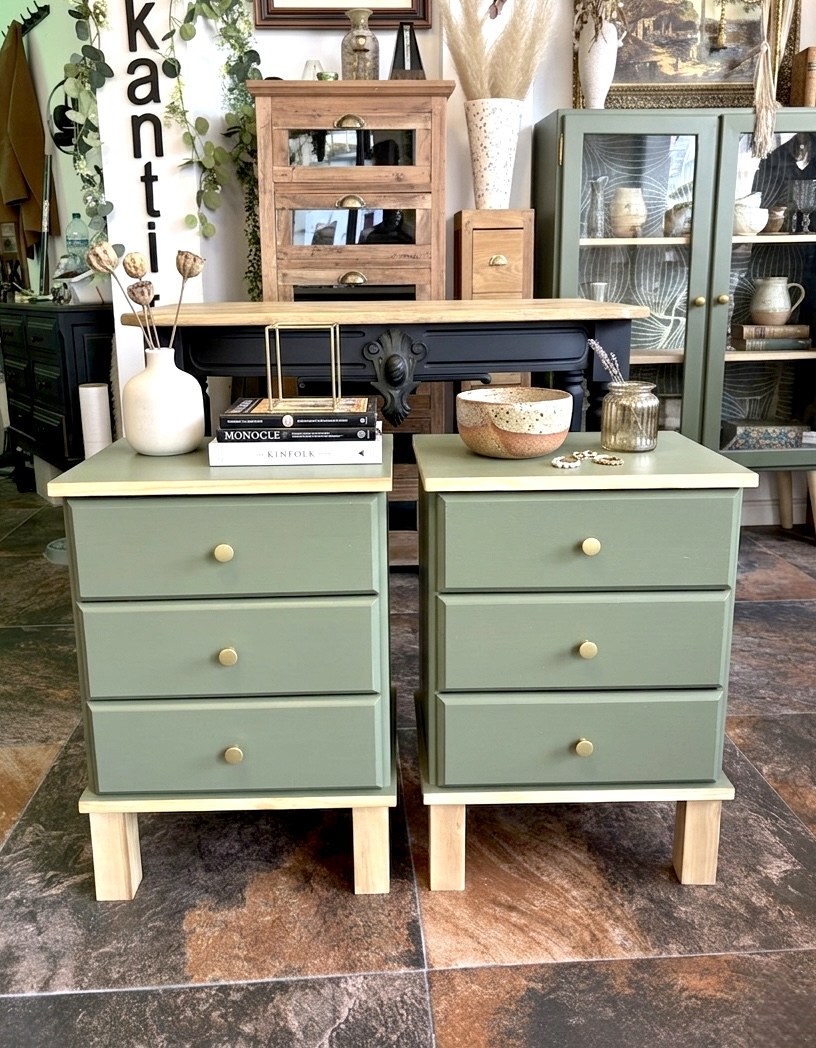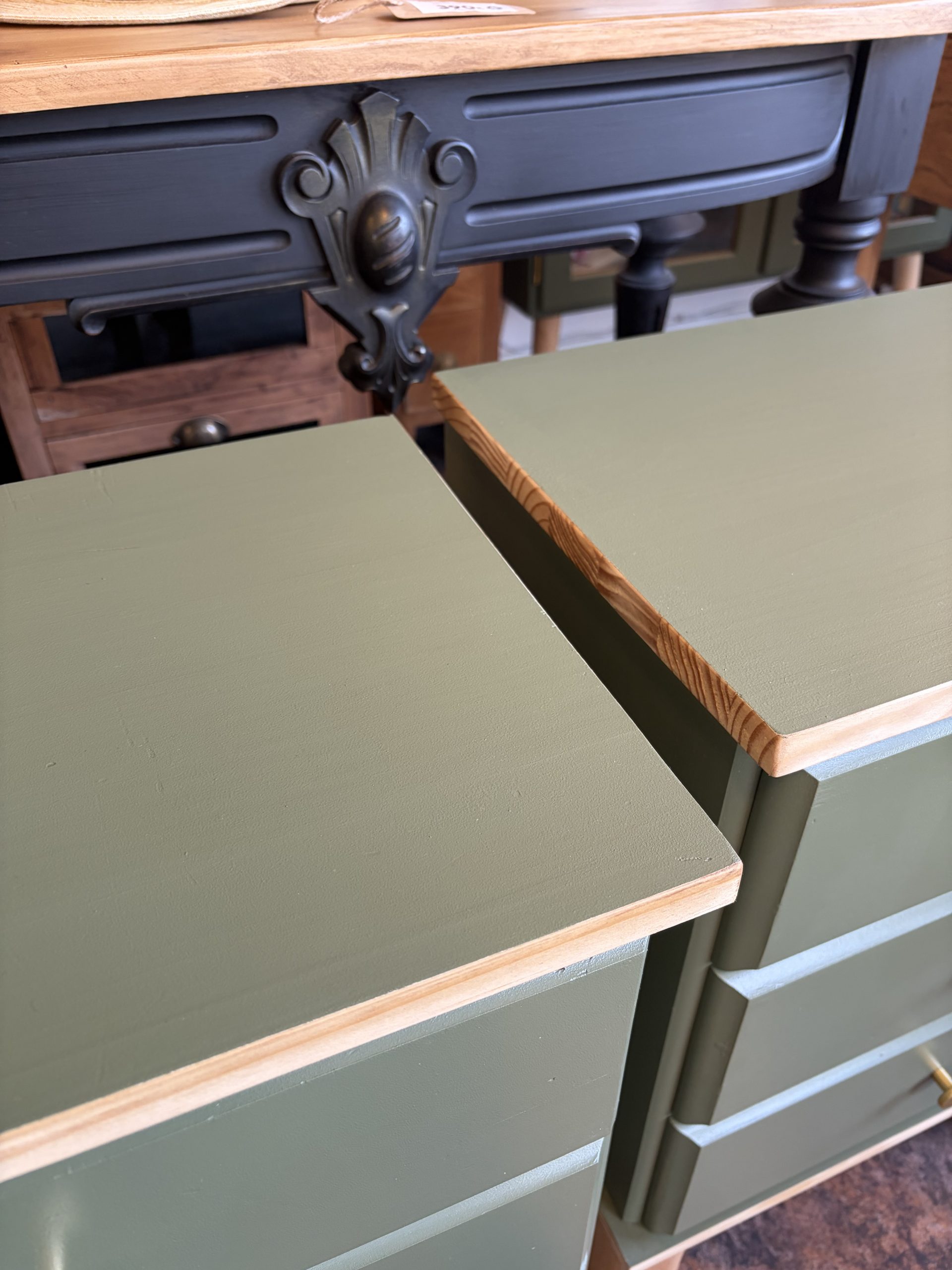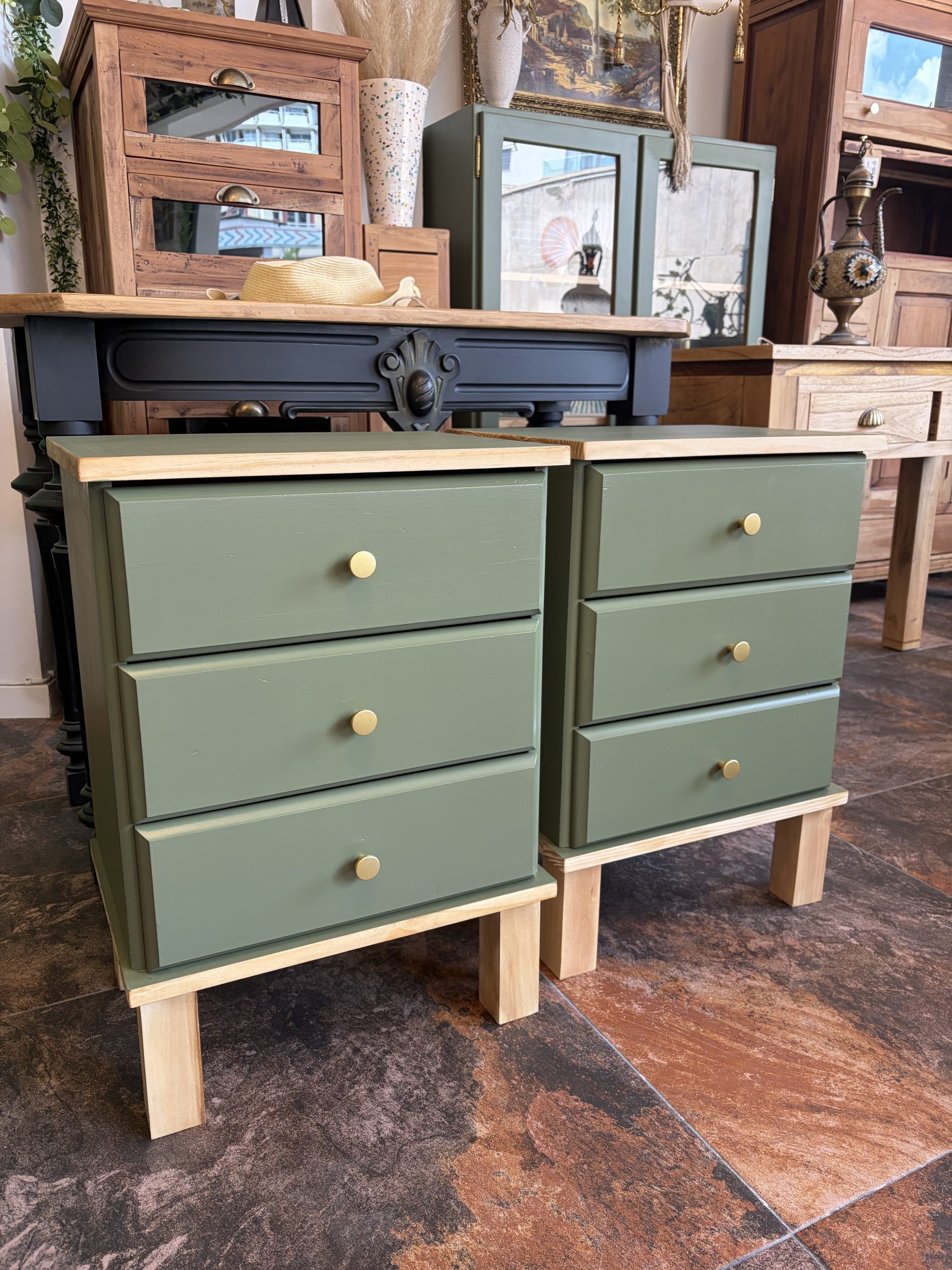 El conjunto de mesitas Genova es la esencia de la serenidad y un toque de color en el dormitorio. Estas mesitas han sido creadas para crear un rincón de descanso lleno de luz, combinando un acabado verde suave con la calidez de la madera maciza natural. Un diseño moderno y funcional que aporta ese aire fresco que transforma el dormitorio.