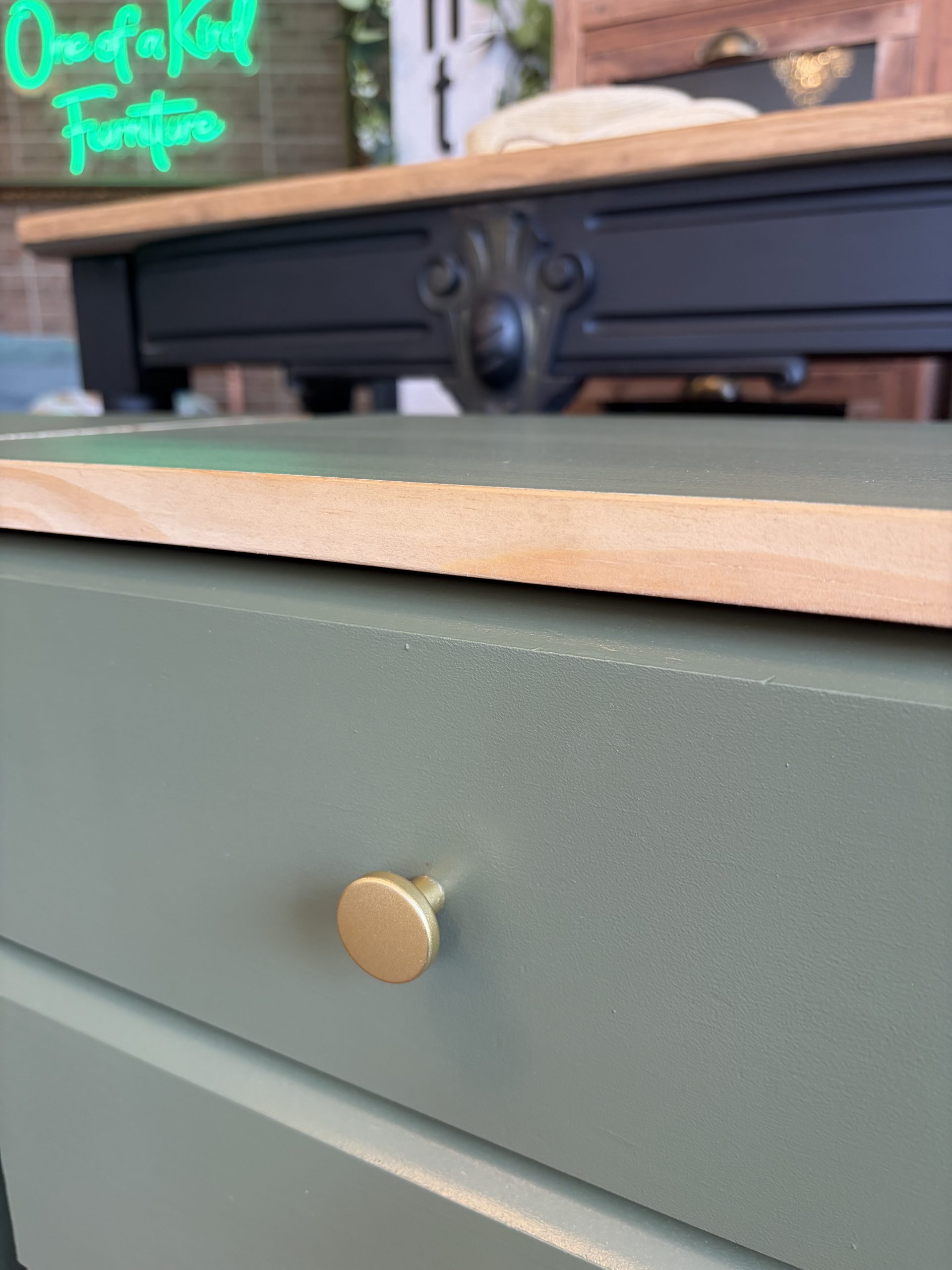 • Contraste Orgánico: La combinación del verde y la madera vista crea un equilibrio perfecto.