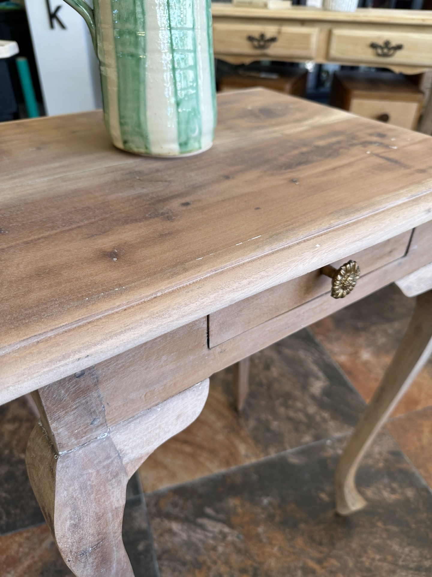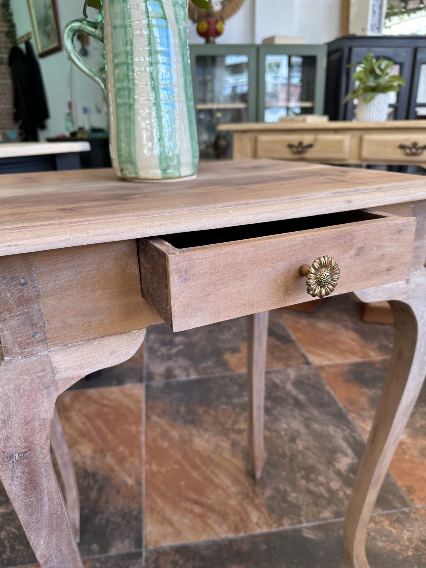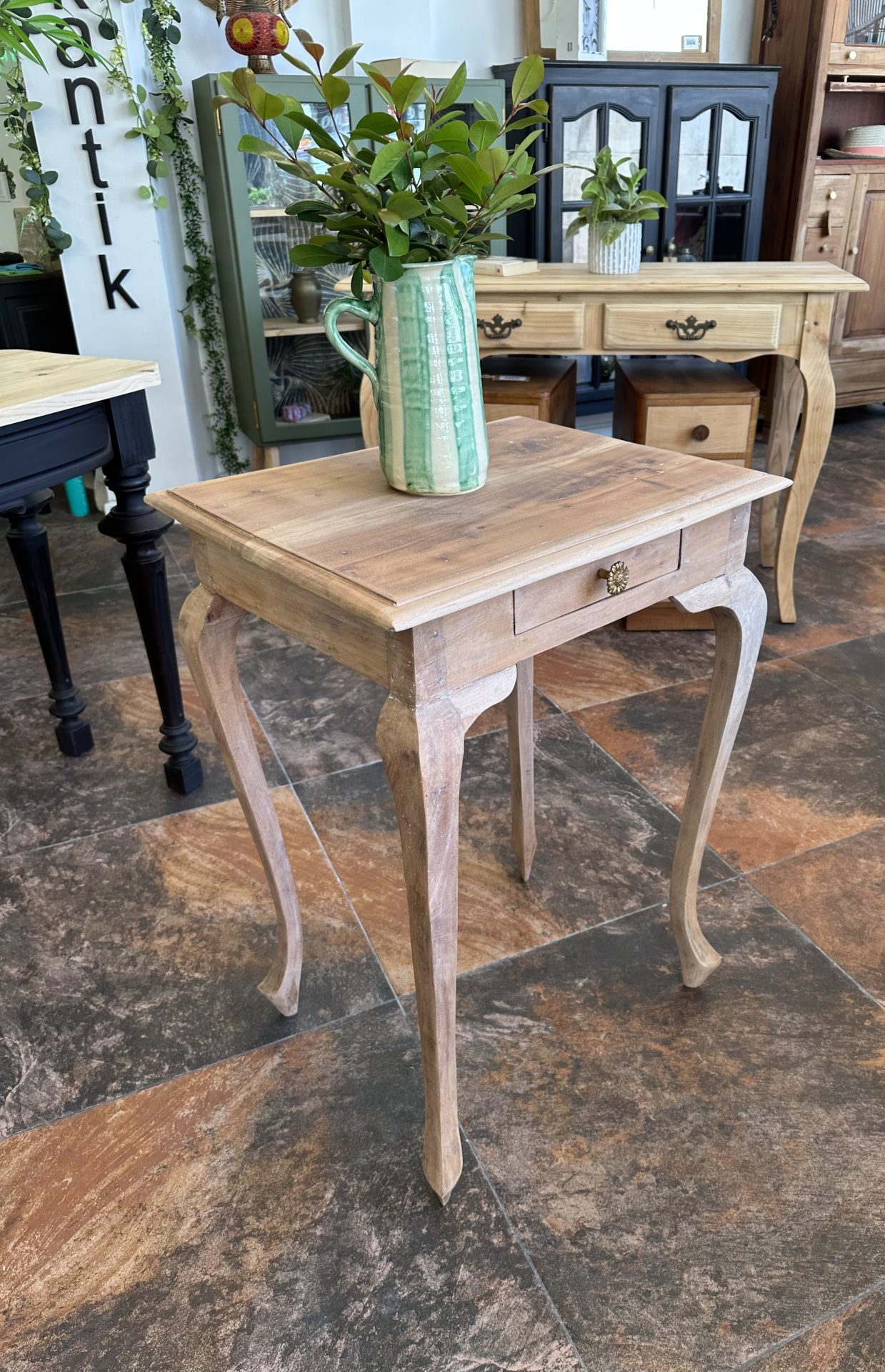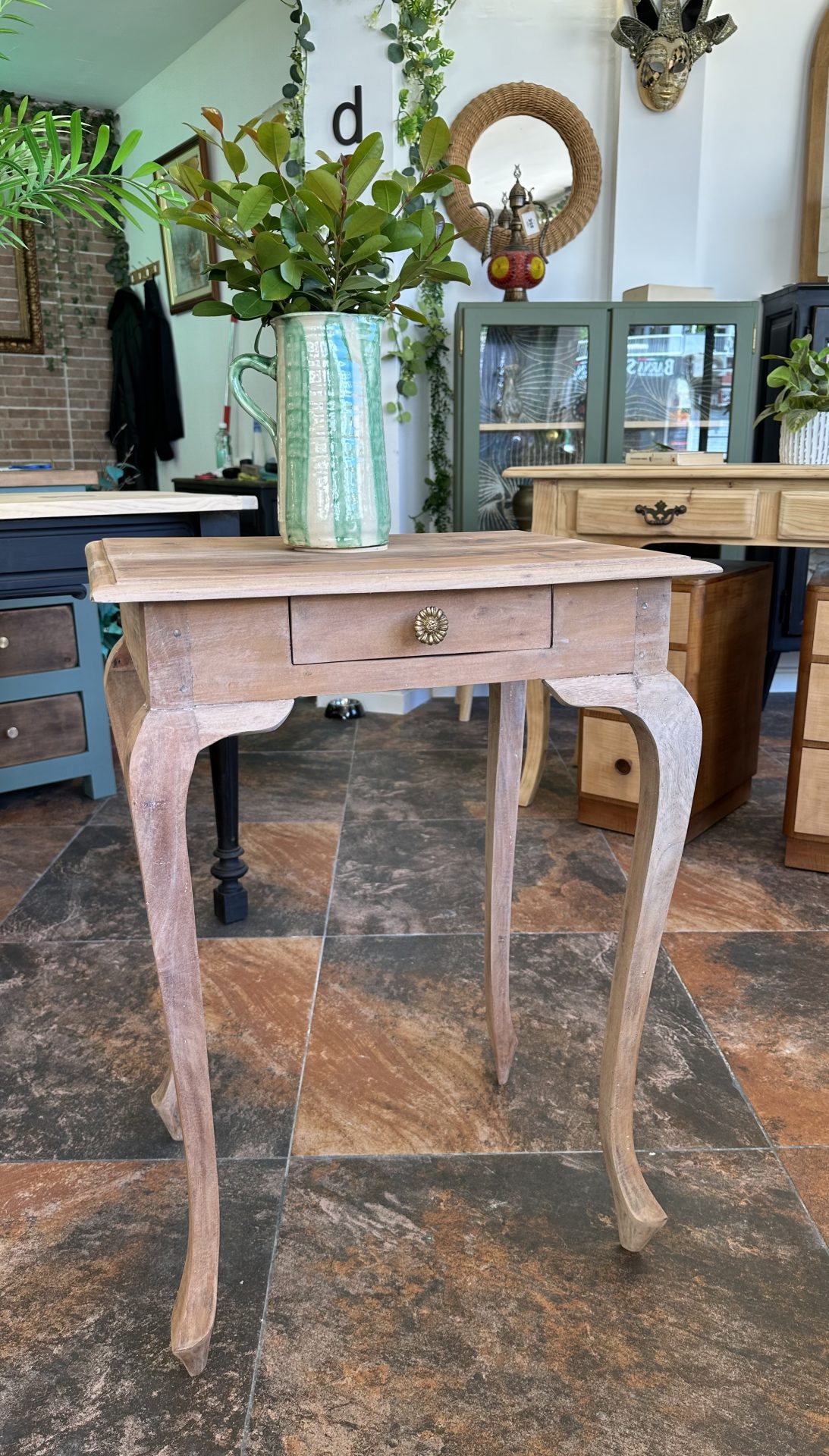 Con patas isabelinas y la fuerza de la teca maciza, esta consola combina elegancia clásica con un aire atemporal. Perfecta para el recibidor, el salón o ese rincón que pide un toque de carácter y estilo.