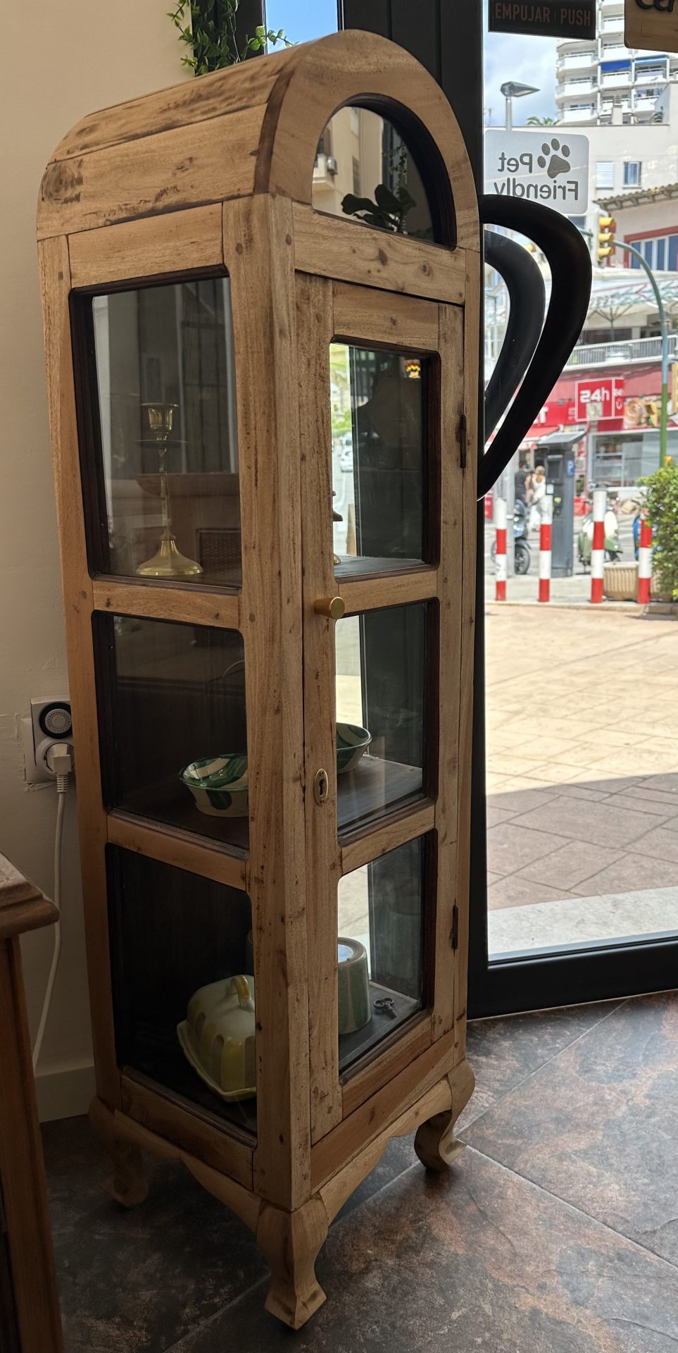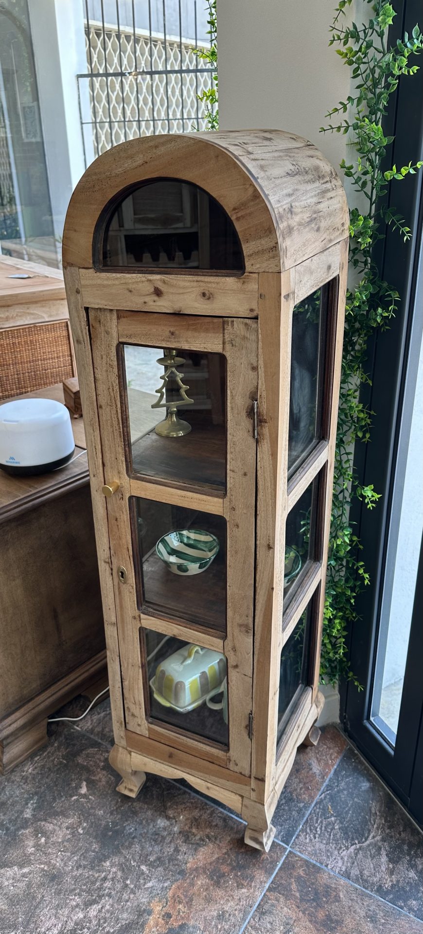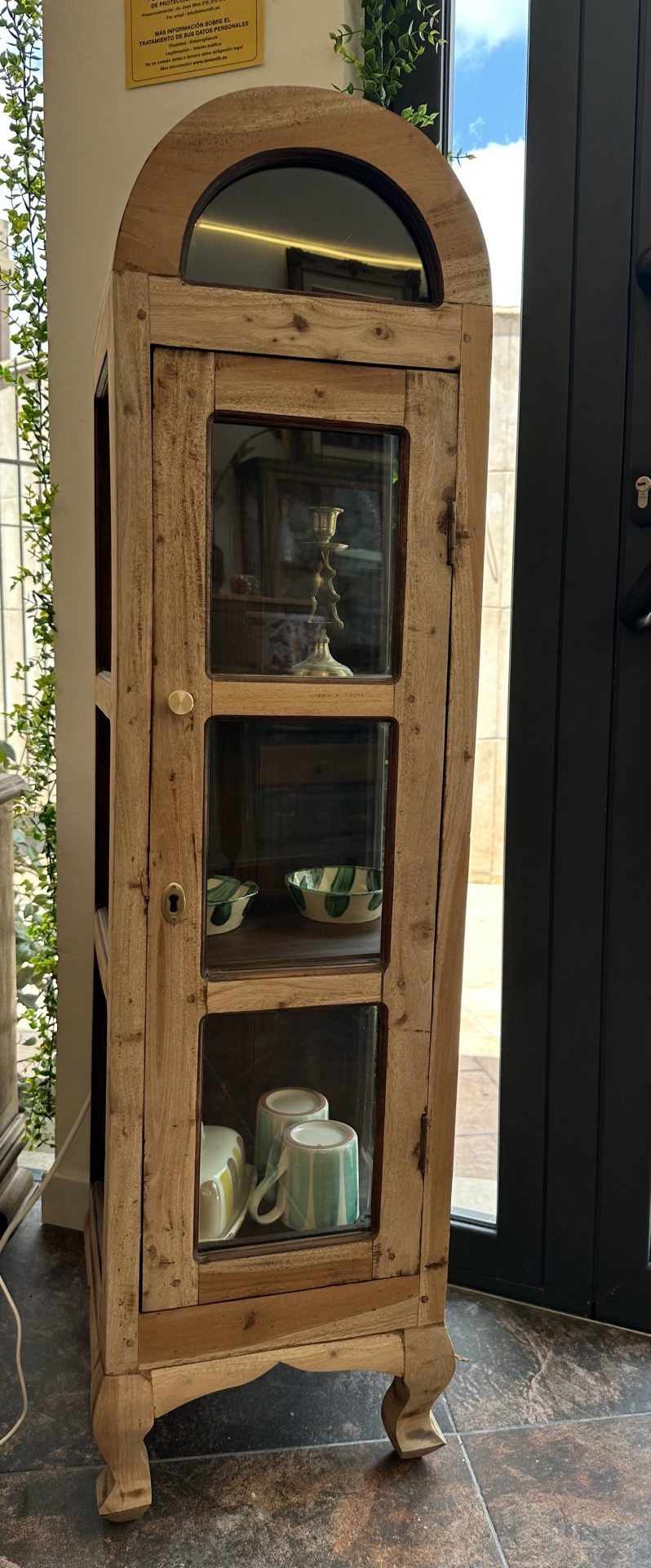Si buscas una pieza que combine el encanto de la madera natural con un diseño moderno y elegante, nuestra Vitrina Mimi es la opción perfecta. Con su estructura de madera de teca y el elegante detalle del arco, esta vitrina no solo te ofrece un amplio espacio de almacenamiento, sino que también será una pieza de diseño que transformará tu espacio con su sofisticación.